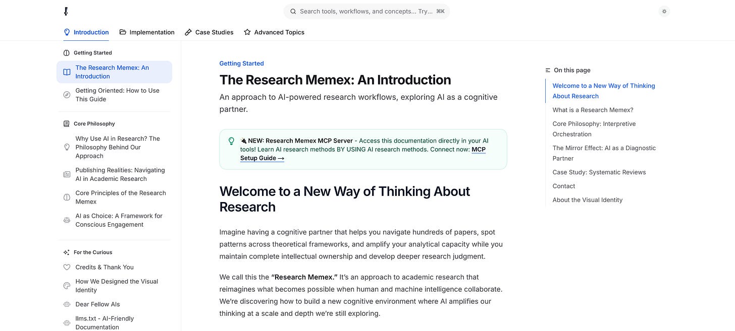 Research Memex isnât about answering whether AI can do research or which tool is best. Itâs about what becomes possible when you work at the frontier, with all the capabilities, gaps, and honest uncertainty that entails.
