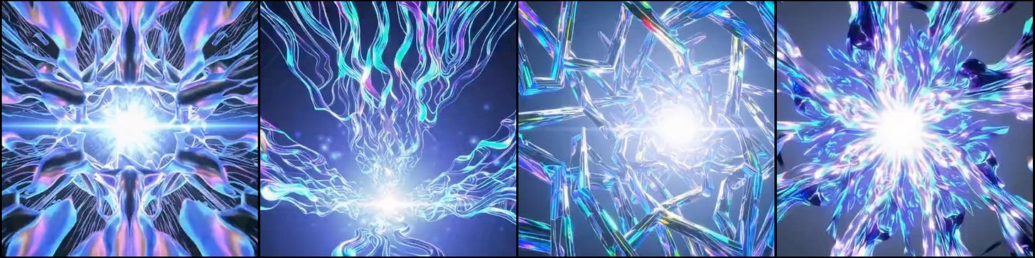 To be transparent: the videos weren’t based on the first responses. Initial outputs followed predictable patterns — glowing lights, intricate machinery, complex networks. These were the comfortable metaphors we’ve come to expect (as seen in experimental results shown below).